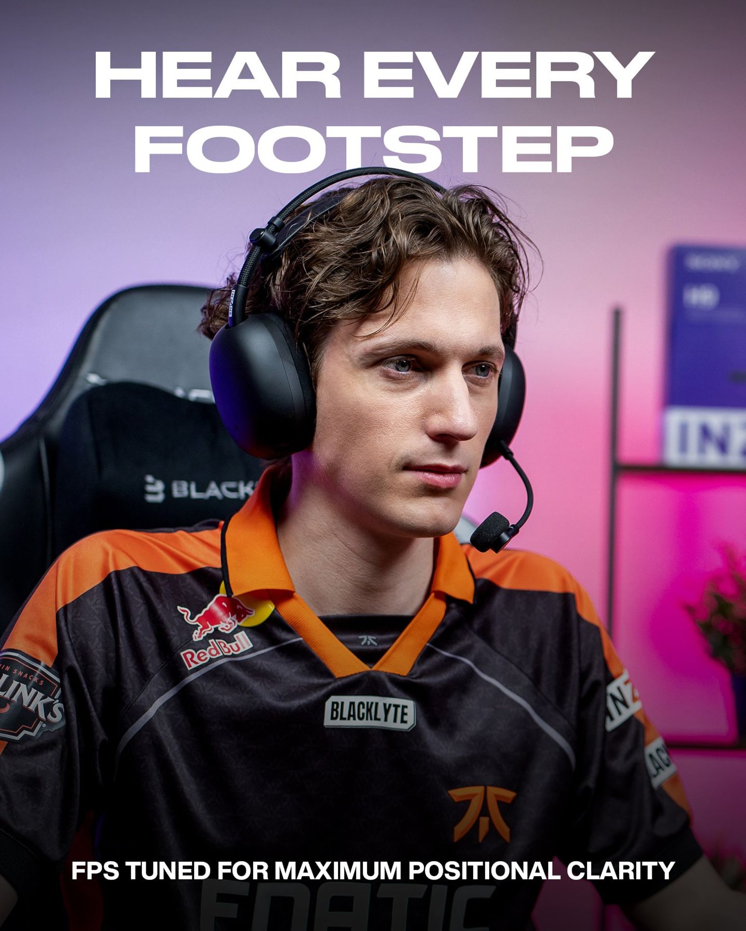 Developed with Fnatic’s VALORANT and Apex Legends teams, this custom EQ profile is tuned for the sounds that matter—spikes, footsteps, and every clutch play.